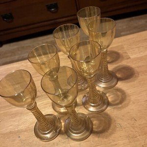 Hock Weingläser Set (7) mundgeblasen gold irisierend hohler Bienenstockstiel
