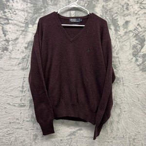 Vintage Polo Ralph Lauren Pullover Herren Large weinrot 100 Lammwolle V-Ausschnitt adrett