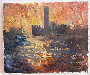 Impressionist Tonalism London Parliament Sunset Oil Painting On Canvas 20”x 24”