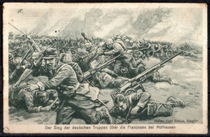 Feldpostkarte: Der Sieg der deutschen Truppen über die Franzosen bei Mülhausen.
