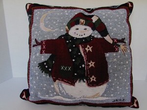 Christmas Holiday Tapestry Throw Pillow Snowman by Jerinley 15"