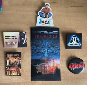 Vintage Menge 5 Film Promo Pins PLUS Unabhängigkeitstag Hologramm Karte