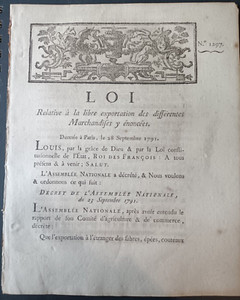 LOIS ARRETES DECRETS - LOI - Libre exportation Marchandises - 28 Septembre 1791