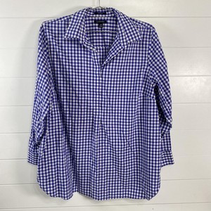 Lands' End Hemd Damen 18W blau weiß Gingham bügelfrei Supima Button Down Bluse