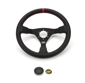 OMP WRC Steering Wheel Black And Red 350MM 65mm Dish Black Leather Red Stripe Al