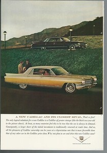 1966 CADILLAC advertisement, Sedan De Ville, with 1964 model too, print ad