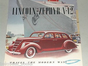1937 Lincoln ZEPHYR advertisement, Lincoln Zephyr V-12, Burlington RR Zephyr too
