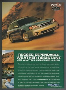 2001 SUBARU OUTBACK advertisement, Subaru Outback L. L. Bean edition print ad