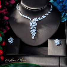 2 Pièces Zircon AAA+ Set de Bijoux Collier Boucles D'Oreilles Mariée en Argent
