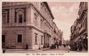 28-175) CARTOLINA BARI VIA ABATE GIMMA BANCO NAPOLI ANIMATA VIAGGIATA 1941