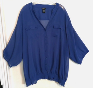 Torrid Damen Bluse 4 Plus 4X blau Tunika transparent Knopfleiste 3/4 Arm Taschen