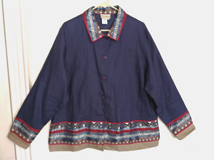 Coldwater Creek Damen Bluse 2X Plus 100% Leinen blau Southwestern Knopfleiste