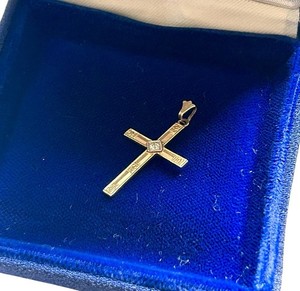Vintage antiker 14K Gelbgold Diamant 1" Kreuz Anhänger 0,7 g religiöses Geschenk