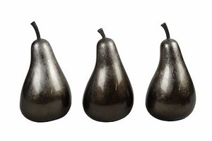 Set x 3 Lacquerware Pear Ornaments - Copper Colour