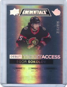 2021-22 Oberdeck Anmeldeinformationen #104 Egor Sokolov 215/999 Rookie-Karte