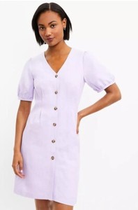 Neu mit Etikett Damen S 18 LOFT lila Leinenmischung Kleid V-Ausschnitt Puffärmel geknöpft ausgestellt CHF 21,49
