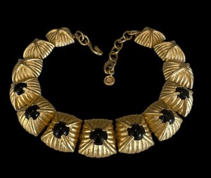 Givenchy Halskette vergoldet mit simuliertem schwarzem Onyx 80er Jahre Retro signiert