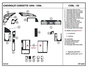 Interior Real Carbon Fiber Dash Trim Kit for CHEVROLET CORVETTE 1994-1996