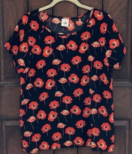 Crown & Ivy Damen Top Kurzarm Größe Large bestickt rot & schwarz gebraucht, in einwandfreiem Zustand CHF 7,99