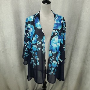 Susan Graver Strickjacke Damen 1X blau schwarz Blumen vorne offen transparent