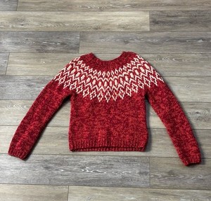 American Eagle Sweater Sz M Fair Isle Chunky Hand Knit Lambswool Y2K Vtg Preppy