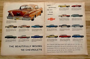 58 Chevrolet Seventeen Cars Two Page Vintage Print Magazine Ad