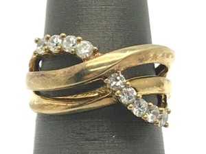 Sterling Silver Gold Tone Oxidized CZ Pave Overlap Crossover Cocktail Ring 6.75