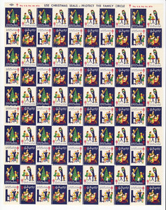 1961 Christmas Seals Full Stamp Sheet United States - Family, Christmas Tree