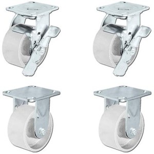 CasterHQ- 5 inch x 2 inch Steel Swivel Casters w/Brakes (4) Cast Iron Wheel