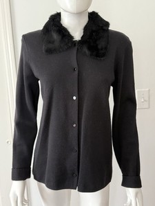 Neu St John Black Label Santana Strick Kaviar Jacke goldfarbene Knöpfe, Fransenbesatz CHF 194,970 Gebote3T 23Std 41 Min