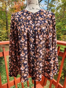 Ann Taylor LOFT Bluse Langarm transparent Knopfleiste dunkelblau & rosa Print XS