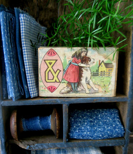 We keep our store stocked with unique primitives and antiques and specialize in refurbished dough bowls and bread boards. Blue calico and blue milk paint are my favorites!