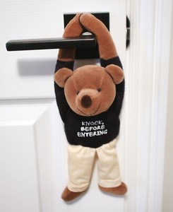RUSS BERRIE & CO KLOPFEN VOR DEM BETRITT BRAUNER KLEINER BÄR TÜRHÄNGER 12 ZOLL