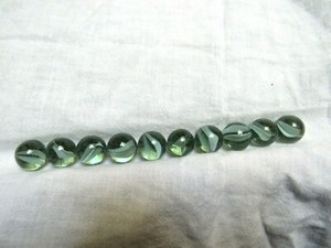 Vintage Peltier? Set 10 Katzenaugen Murmeln Banane Opal weiße Farbe auf klarem Grün