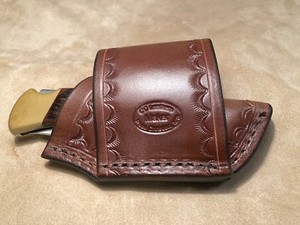 Maßgefertigte Lederscheide für 4" Trapper (linke Hand)