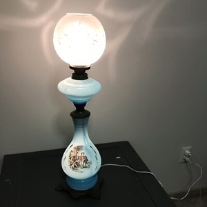 VINTAGE ÖL KUGEL LAMPE umgebaut auf elektrische Pioneer Familie blau mattiert [CB16]