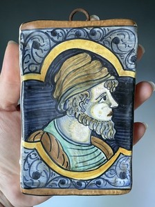 Vintage Saca Castelli Fliese Renaissance Mittelalter handbemalt Portrait Plakette