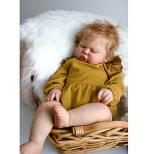 24 Zoll bemalte Reborn Baby Puppe schlafend Baby Mädchen gelb lockiges Haar Stoffkörper