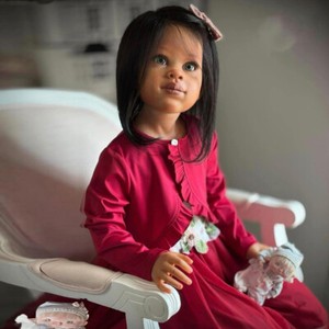 30" Reborn Doll Finished Toddler Boy Hand-Rooted Curly Hair Dark Skin Handmade