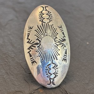 Teresa Navajo Vintage gestempelt Kuppelring Sterlingsilber ungewöhnlich oval Größe 7,5