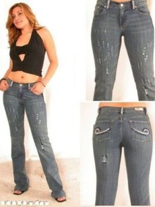 Joy Ladies Denim Blue Jeans With Rhinestones Designer Pockets