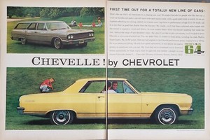 1963 Chevrolet Chevelle Automobile Car Yellow Family Picnic 2 Page Print Ad