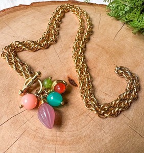Jesara Vintage Necklace Gold Toggle Pastel Lucite Charm Cabochons Pendant Lariat