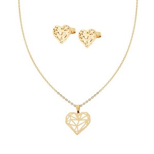 Parure Orecchini e Collana Catena Forzatina Diamantata Cuore in Acciaio Colore O