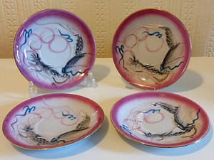 4 x Vintage rosa Drachengeschirr Moriage Geisha Litophan Untertassen.