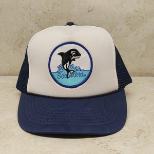 Vintage Seaworld Mütze Trucker 1982 Orca Foam/Mesh Back OSFA blau weiß Taiwan