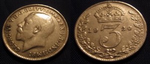 50% MASSIVES SILBER 3d 1920 Münze Beginn der brüllenden 20er Jahre Antik Britisch Englisch