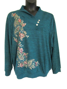NEU MIT ETIKETT ALFRED DUNNER L/S TÜRKISGRÜN VISKOSE-MISCHUNG STICKEREI/VERZIERUNG SWEATSHIRT TOP 3X CHF 20,18