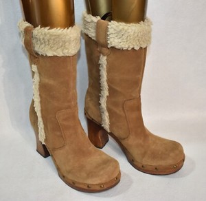 Mia Stiefel hellbraun Wildleder klobiger Absatz Größe 8 Vintage