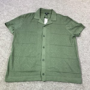 Express Hemd Herren groß grün Strick Häkel Lochmuster Camp Kragen Knopf kubanisch